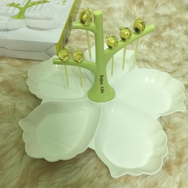 Kiểu dáng hiện đại, lạ mắt, màu sắc trẻ trung khay kèm dĩa sẽ mang đến sức sống mới trên bàn tiệc thay vì những chiếc đĩa đơn điệu thông thường. Không chỉ đơn thuần là chiếc khay đựng hoa quả, giờ đây nó đã trở thành một trong số những vật trang trí thật xinh trong căn phòng nhỏ của bạn rồi…
